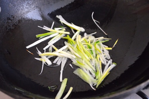 Rửa sạch giá đỗ và hành lá. Hành lá thái dọc rồi cùng với giá đỗ trộn sốt đậu nành, dầu mè, muối, đường, rượu và hạt tiêu. Sóc cho đều rồi để qua một bên.
