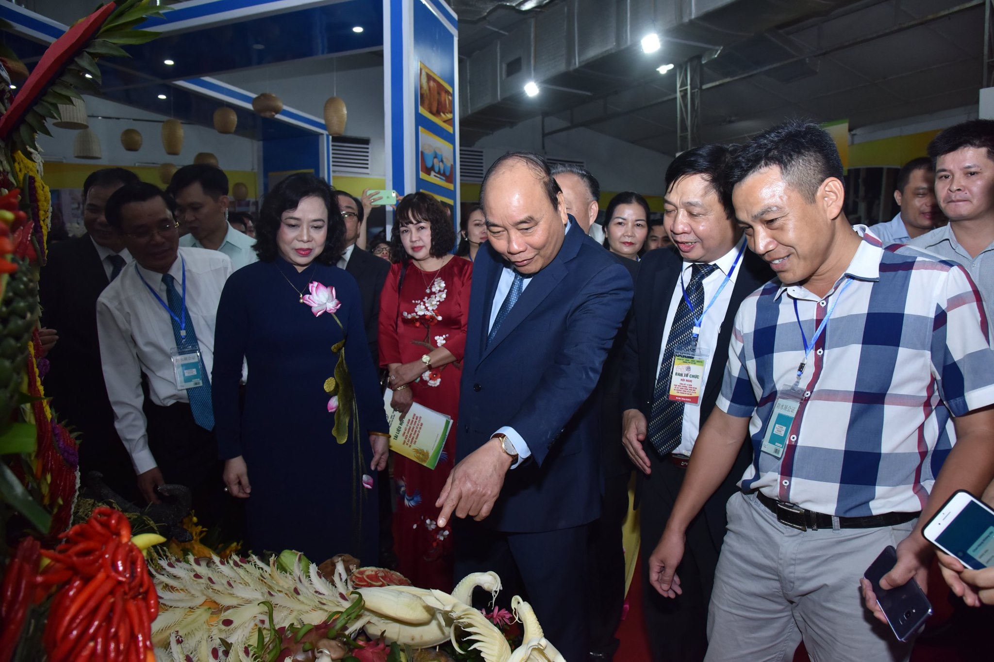 Thủ tướng Nguyễn Xuân Phúc thăm quan gian hàng giới thiệu đặc sản Miến So và các mặt hàng thủ công mỹ nghệ và sản phẩm OCOP Thủ đô |