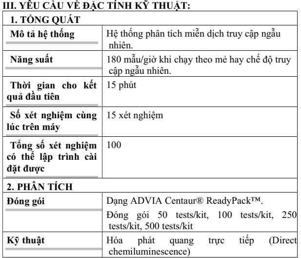 Series Adiva tiếp tục được gọi tên tại mục “Hệ thống xét nghiệm miễn dịch tự động” khi E-HSMT yêu cầu: Đóng gói dạng Dạng ADVIA Centaur® ReadyPack™, Cóng đo chủng loại ADVIA Centaur, gói phần mềm ADVIA® QC,...