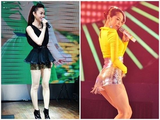 Ngoài thể hình đẹp, đôi chân thon dài là bí quyết tạo sức hấp dẫn cho người đẹp trên sân khấu âm nhạc. Những bộ cánh ôm dáng, quần siêu ngắn được tận dụng tối đa giúp cô trở thành tâm điểm chú ý khi xuất hiện. Trang phục được đầu tư đúng mức mang lại những đánh giá cao cho người mặc.