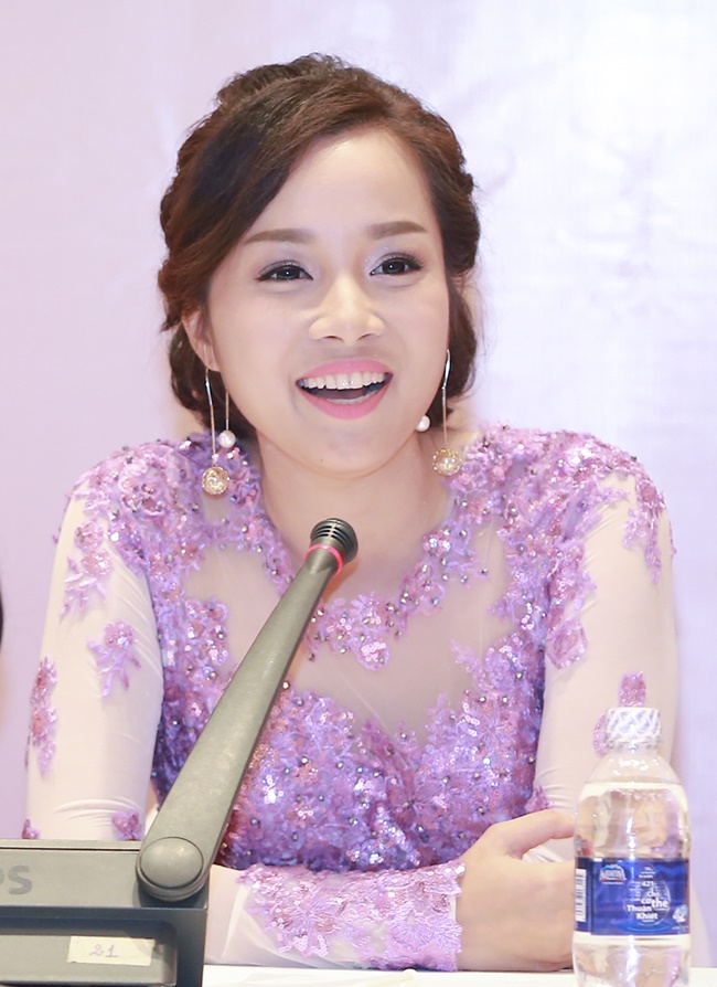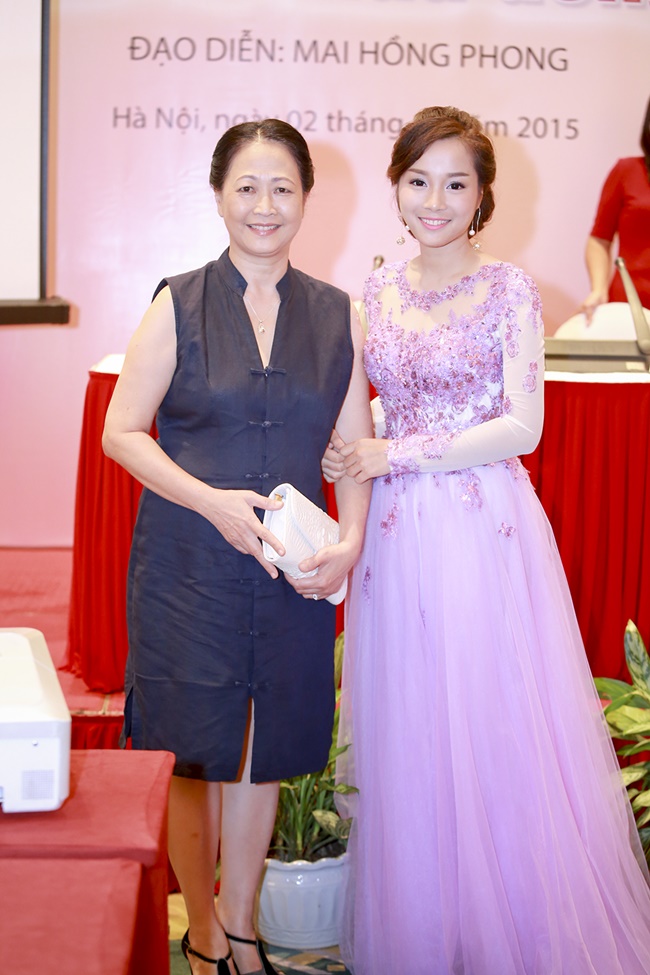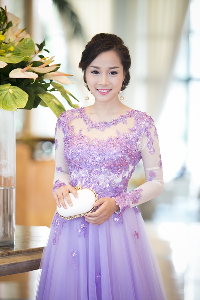 Diễn viên Minh Hương diện bộ đầm nền nã, sang trọng trong buổi họp báo giới thiệu phim "Lời ru mùa đông". |