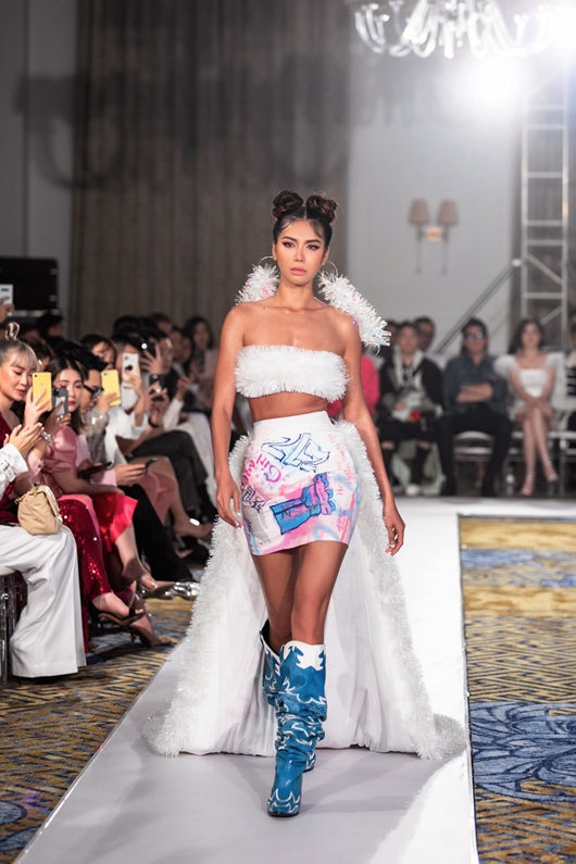 Xuất hiện trong bộ trang phục ấn tượng được tận dụng từ những nguyên liệu tái chế, làn da nâu khoẻ khoắn cùng với cá tính mạnh mẽ của Minh Tú khi sải bước trên sàn runway đã chuyển tải xuất sắc những thông điệp mà Quỳnh Anh Shyn muốn gửi gắm, đó là thông điệp kêu gọi bảo vệ môi trường cùng tính thời đại, sức trẻ được thể hiện trong các mẫu thiết kế. |