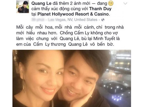 Thế nhưng hôm sau, khi thấy các báo đồng loạt đưa tin Quang Lê chia rẽ tình cảm chị em Minh Tuyết, Cẩm Ly, tôi không hiểu chuyện gì xảy ra. Ngay lập tức tôi gọi điện hỏi Quang Lê và yêu cầu cậu ấy gỡ bỏ ngay những chia sẻ của cậu trên trang cá nhân.