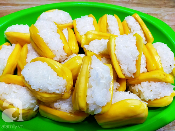 Từng múi mít ngọt thơm hòa quyện với xôi nếp cái hoa vàng dẻo mềm khiến ai ăn cũng tấm tắc khen ngon.