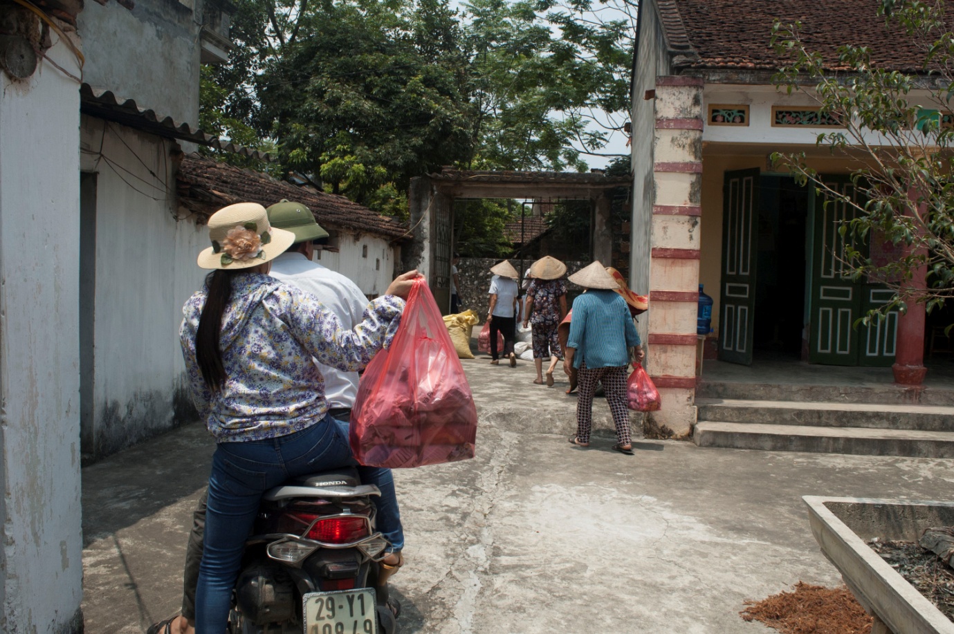 Quay trở lại nhà lương y Nguyễn Thị Hường, trú tại Xóm 11 – Thôn Đồng Mít – Xã Đồng Tâm – Huyện Mỹ Đức – TP Hà Nội vào một ngày đầu hè. Chúng tôi không còn ngạc nhiên trước cảnh tượng la liệt xe máy, xe ô tô biển xanh, biển đỏ từ khắp các tỉnh Sơn La, Lai Châu, Hòa Bình, Bắc Ninh, Hải Phòng, Vĩnh Phúc,…đậu trước ngõ nhà lương y. Cũng giống như lần trước, người đến đây đều là những quý ông ăn mặc sang trọng, thành đạt và lớn tuổi.
