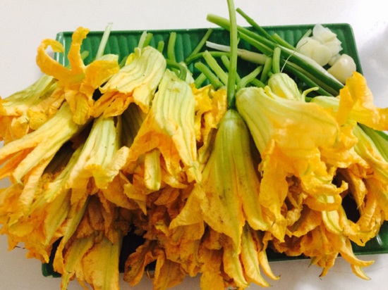 - Bông bí mua về tước xơ, ngắt thành từng khúc vừa ăn, rửa sạch, để ráo.