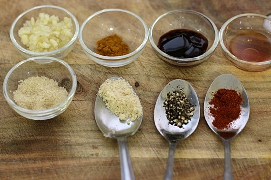 - Dầu hạt điều, nước mắm, hạt tiêu, hạt nêm, sa tế cho vào một bát nhỏ chộn đều thành hỗn hợp sử dụng để ướp cá.