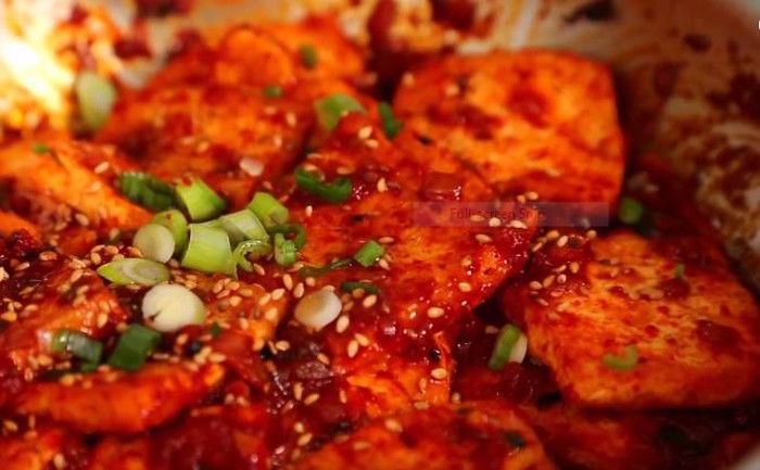 Đậu phụ sốt cay đậm đà với vị cay nồng của ớt bột Hàn Quốc sẽ khiến bữa cơm ngày trở gió của gia đình bạn thêm ngon.