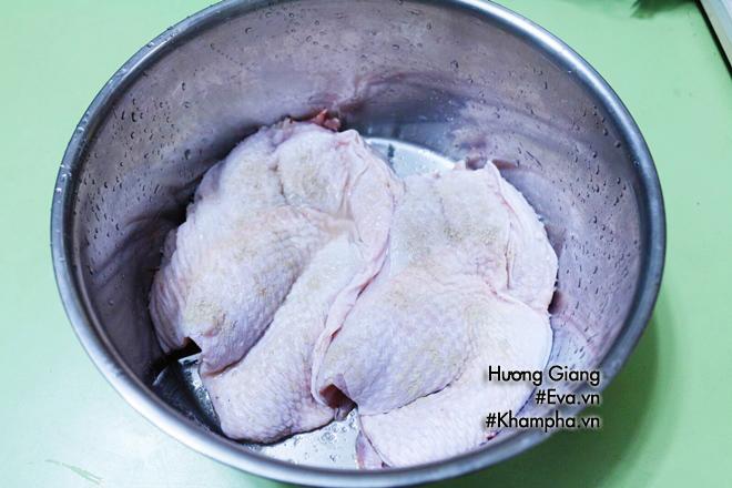 - Thịt gà rửa sạch với chút muối cho hết mùi hôi.