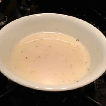 - Chuẩn bị chén nước lạnh pha với một chút bột năng , muối. đường, tiêu.