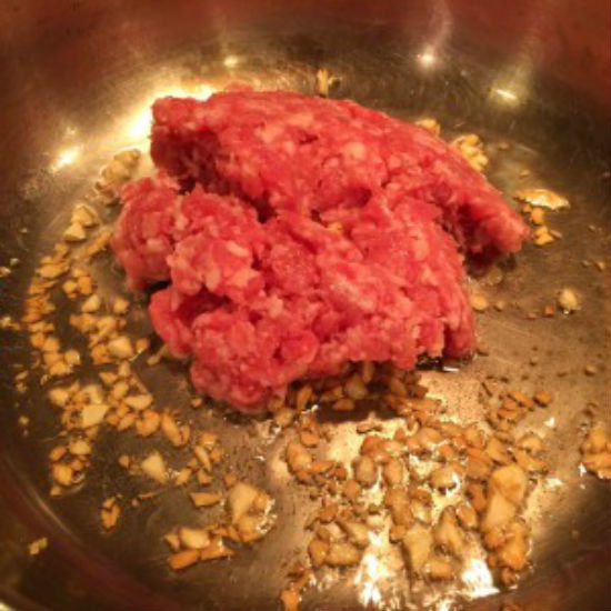 - Bước 2: Sau đó cho tiếp Cho thịt bằm vào xào (lửa lớn).