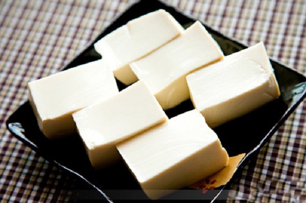 - Đậu phụ cắt miếng vuông con chì rồi lần lượt lăn từng miếng áo qua một lớp bột mỳ phủ ngoài.