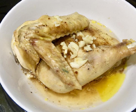 + Lá chanh rửa sạch, thái nhỏ nhồi vào bụng gà.