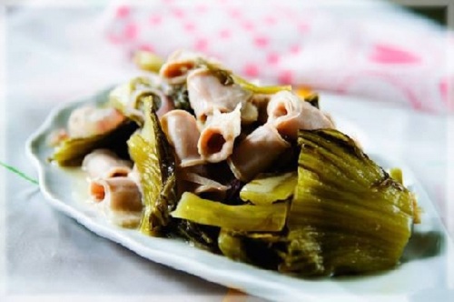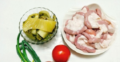 Dưa cải chua xào lòng non thơm nức, dai giòn, đậm đà ăn cùng với cơm nóng ngon miệng vô cùng.