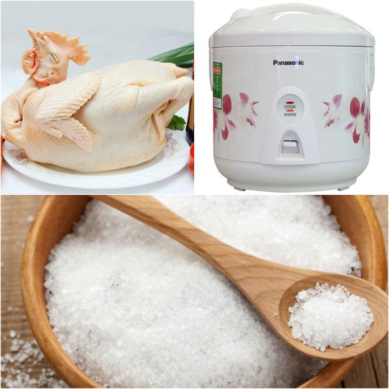 Chỉ với chiếc nồi cơm điện, bạn đã có thể làm được món gà hấp muối ngọt dai, thơm lừng mùi sả ngon đúng điệu.
