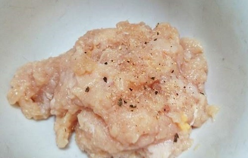 - Bước 1: Ức gà mua về rửa thật sạch rồi băm nhỏ hoặc cho vào máy xay xay nhuyễn. Trong quá trình băm bạn cho thêm chút hạt tiêu và hạt nêm để món gà viên thêm đậm đà.