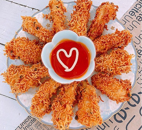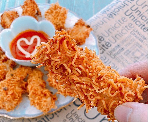 Tận dụng hương vị đậm đà của mỳ tôm, cùng với sự khéo léo của mình bạn có thể chế biến món gà chiên độc lạ không đâu có.