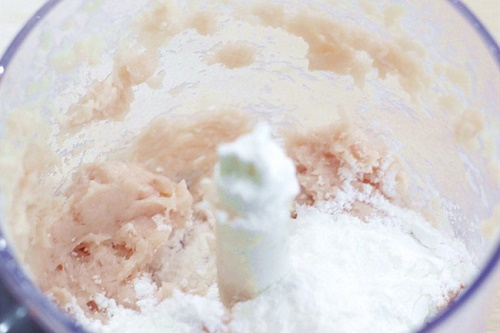 - Bước 2: Cho ức gà và tinh bột ngô vào máy xay, xay nhuyễn mịn.