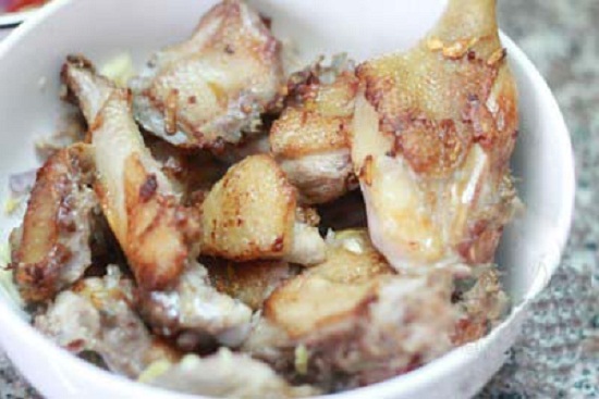 - Chặt vịt thành những miếng vừa, cho 1/2 chỗ hành+ tỏi +gừng còn lại vào ướp.