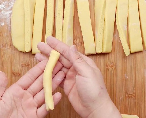 - Bước 4: Cắt bột thành từng thanh dạng con chì.