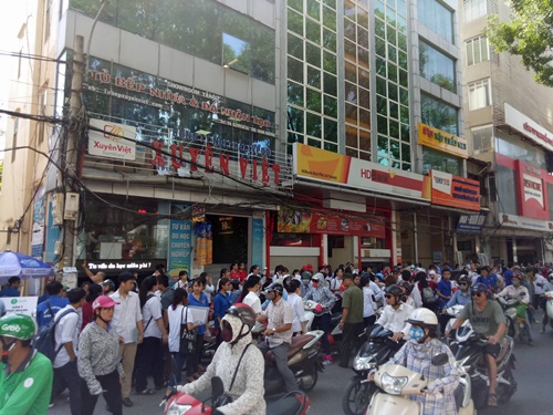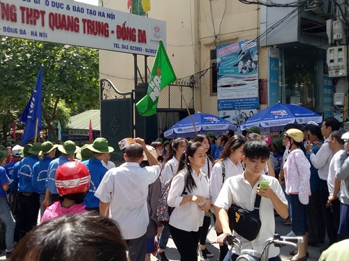Các thí sinh tại điểm thi trường THPT Quang Trung. |