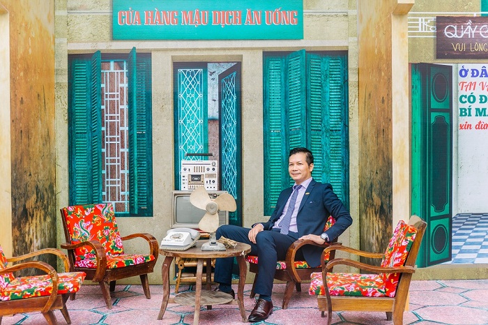 | Chuyên gia bất động sản - ông Phạm Thanh Hưng chụp ảnh cùng với khu vực được décor Hà Nội những năm 80 của thế kỷ trước. |