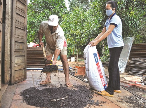 Nhà bà Diệp Thị Thêu mỗi ngày gom hàng chục bao bọ đậu đen. |