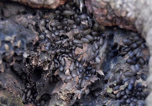 Những con bọ đậu đen cánh cứng thường đi theo bầy đàn. |