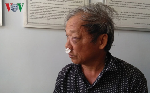 Nhà báo Hoàng Đình Chiểu bị chấn thương nhiều phần trên cơ thể, đặc biệt vùng mặt bị nhiều vết thương tụ máu do bị 2 đối tượng tấn công lúc đưa gia đình đi ăn sáng.