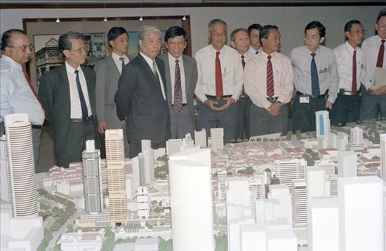 | Tổng Bí thư Đỗ Mười thăm Khu công nghiệp Jurong và Cục phát triển Quản lý đô thị Singapore (tháng 10/1993). Ảnh: Xuân Lâm/TTXVN |