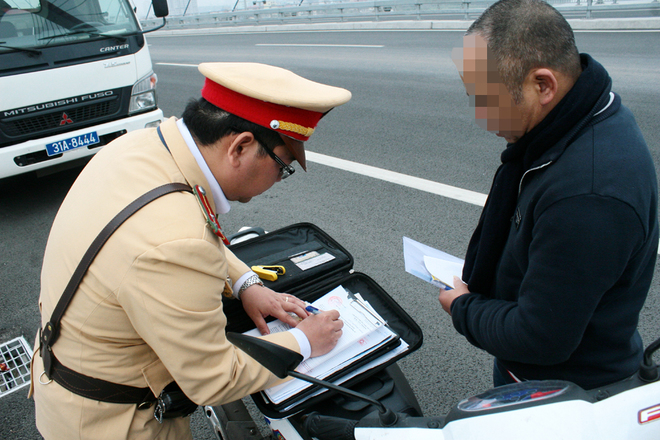 Tài xế đầu tiên bị xử phạt trên cầu Nhật Tân. (Ảnh Vnexpress) |