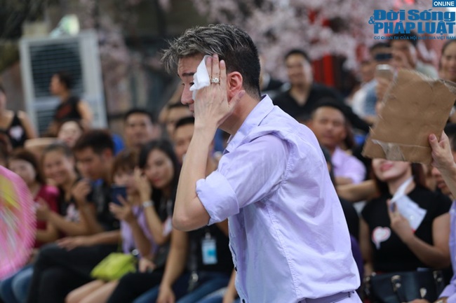 Anh chia sẻ rằng một trong các ca khúc này sẽ được biểu diễn trong Đêm chung kết Hoa hậu Hoàn vũ Việt Nam 2015 sắp tới. Các fan dù lớn tuổi nhưng rất hào hứng, cổ vũ nhiệt tình cho nam ca sĩ. Mặc dù thời tiết đầy oi bức nhưng nam ca sĩ vẫn biểu diễn hết mình để phục vụ fans cũng như không quên giành tặng cho fans những bức hình selfie lưu niệm.
