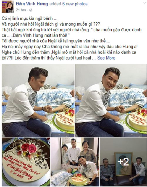 Tôi được người nhà của Ngài kể lại nguyên văn như thế. Họ nói mấy ngày nay cha không mở mắt ra lâu như vậy đâu chú Hưng ạ! Nghe chú Hưng đến thăm, Ngài mở mắt hỏi cả nhà hoài khi nào danh ca tới? Lúc đến thăm thì thấy Ngài cười tươi hoài. Ông còn tặng cho mình 1 chiếc bánh sinh nhật nữa chứ."