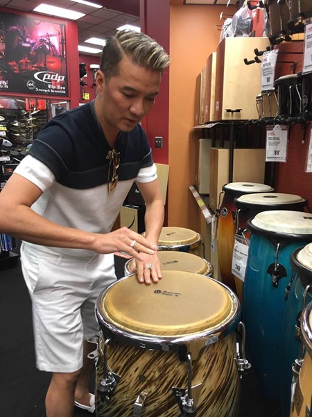 Vẫn như mọi chuyến lưu diễn khác, sau giờ lên sân khấu, Mr Đàm luôn tranh thủ thời gian rảnh đi thăm thú các nơi và mua sắm. Mới đây, anh cùng Quang Linh, Phượng Vũ, thành viên nhóm Bước Nhảy và vài bạn bè thân tại Mỹ đi mua sắm nhạc cụ trong một cửa hàng điện tử.