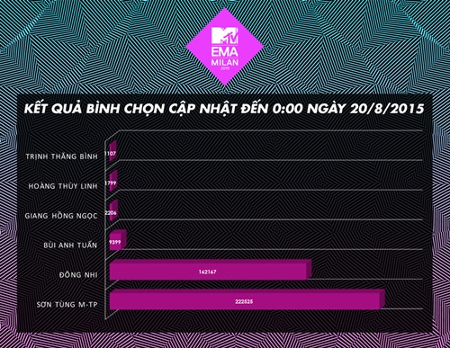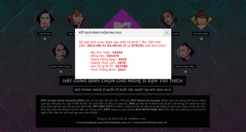 Từ 00:00 ngày 21/8/2015, thay vì công bố kết quả bình chọn mỗi ngày một lần, trang web bình chọn ema2015.com.vn đã cho hiện trực tiếp kết quả bình chọn. Kết quả được cập nhật mỗi 10 phút một lần góp phần làm tăng sự phấn khích giữa các fan. Mức độ cạnh tranh giữa các nhóm fan cũng vì thế mà tăng lên rất nhiều.