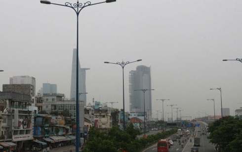 Cũng theo người dân, nhìn từ cầu Sài Gòn về cả 2 hướng quận 1 và quận 9 đều thấy một màn trắng xóa bao trùm. Nhiều tòa nhà cao tầng trong khu vực này chỉ xuất hiện lờ mờ trên nền trời. Có nơi tầm nhìn xa chưa đầy 2km. Người đi đường phải bóp còi xe liên tục để tránh va chạm.