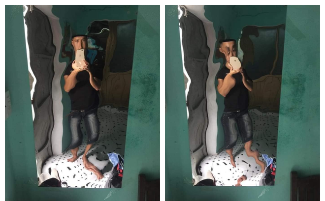 Anh chàng tâm sự như sau: “Em vừa mua được cái gương dán tường, về bóc ra dán soi vào nhìn như bị biến dạng ấy mọi người ạ... Sáng dậy soi gương chắc hết hồn luôn...”