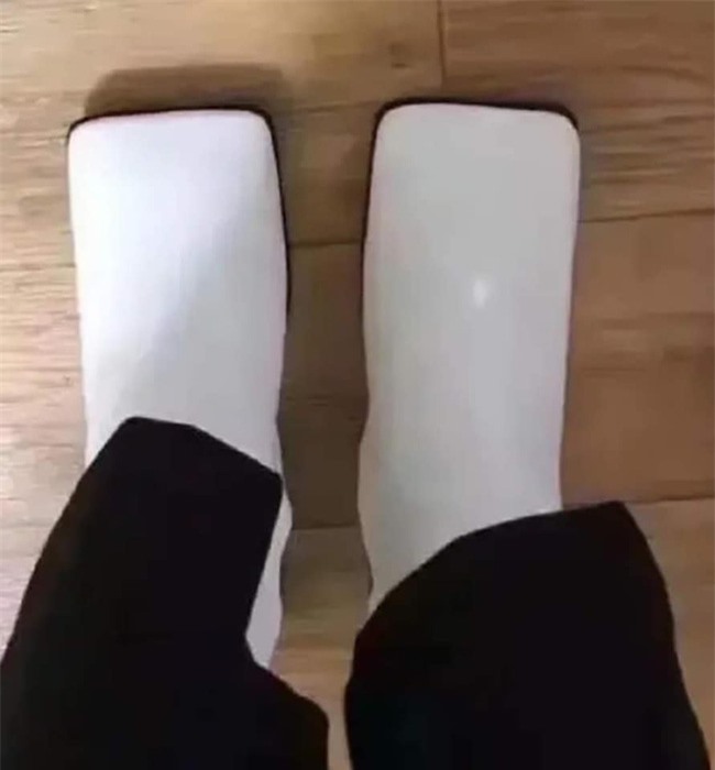 Hình ảnh trên mạng là một đôi bốt mõm vuông với thiết kế khá độc đáo, trẻ trung và có thể nói là "sang chảnh". Thế nhưng khi cô gái nhận được hàng, rõ ràng cũng mẫu mã, màu sắc nhưng đi lên chân thì trông không khác gì đôi ủng.
