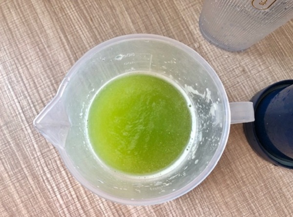 - Bước 2: Cho dưa chuột vào máy xay, thêm 150g nước lọc vào xay nhuyễn rồi lọc lấy nước cốt. Hòa tan nước cốt dưa chuột với bột thạch rau câu.