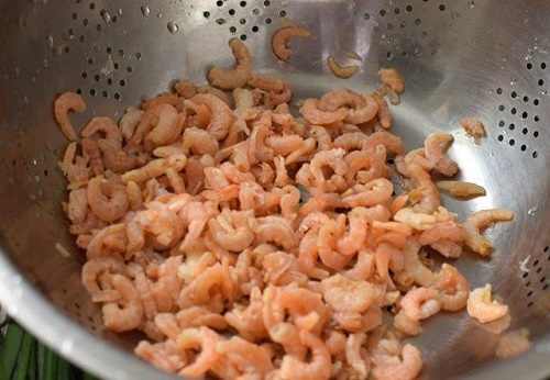 - Bước 2: Tôm khô rửa sạch, ngâm với nước nóng khoảng 1 giờ cho nở sau đó vớt ra để ráo nước.