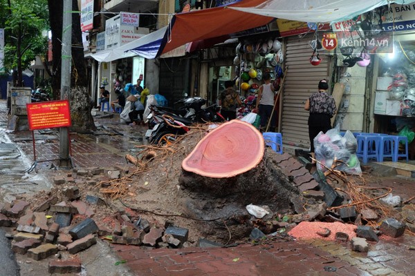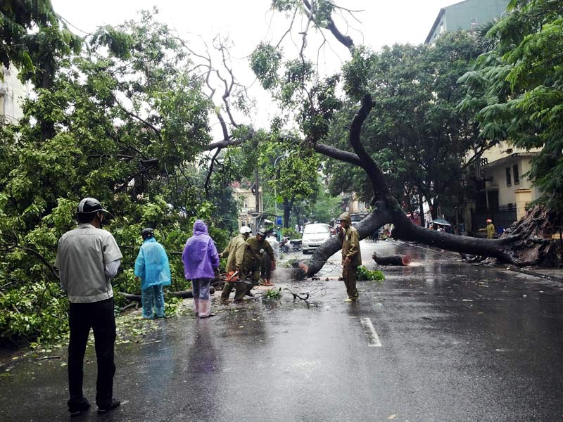 Đại diện công ty Công Viên Cây xanh Hà Nội cho biết: Trận mưa lớn đêm qua kéo dài đến sáng nay đã làm đổ gần 10 cây xanh trên đường phố Thủ đô.