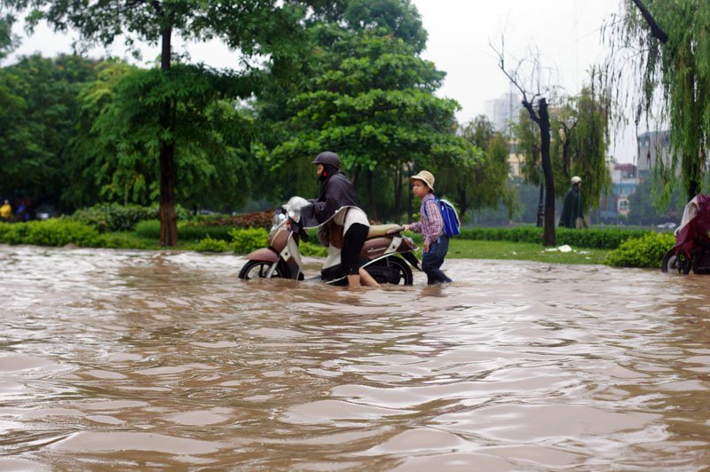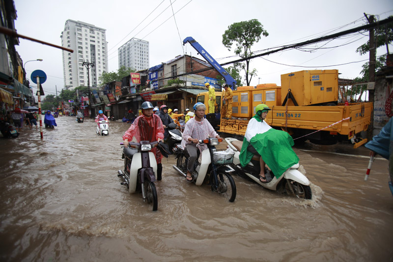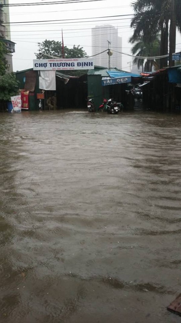 Mưa dồn dập khiến nước trên sông Nhuệ dâng cao gần 4,5m, toàn bộ các tuyến đường tại chân cầu Vĩnh Tuy, Mạc Thị Bưởi, Vĩnh Hưng, Hoàng Mai, Thanh Đàm, Vành đai 3 (ngã ba Khuyến Lương), Lĩnh Nam, Định Công, Quan Nhân, Vũ Trọng Phụng ngập sâu từ 0,2-0,4m.