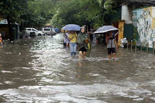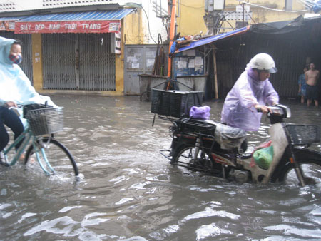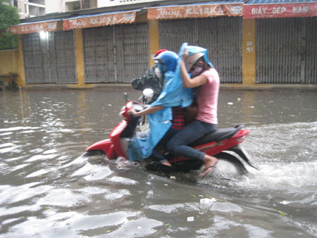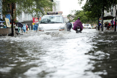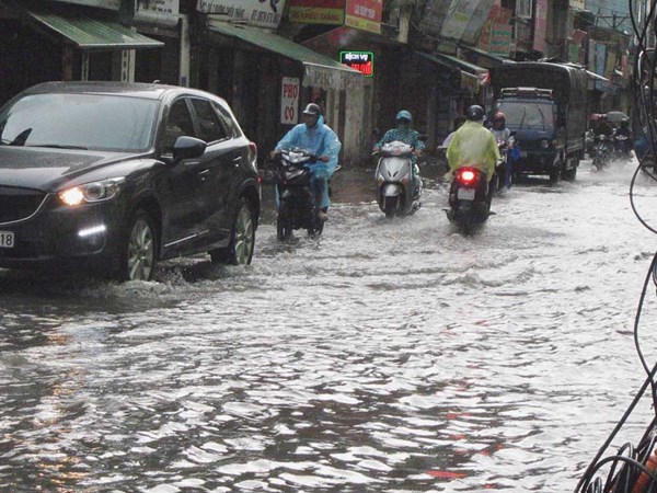 | Mưa lớn cũng gây ngập lụt trên đoạn đường Triều khúc. |
