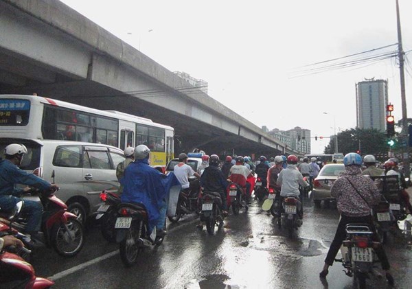 | Do ngập lụt ở một số tuyến đường nên nhiều điểm giao thông sáng nay bị ùn tắc. |