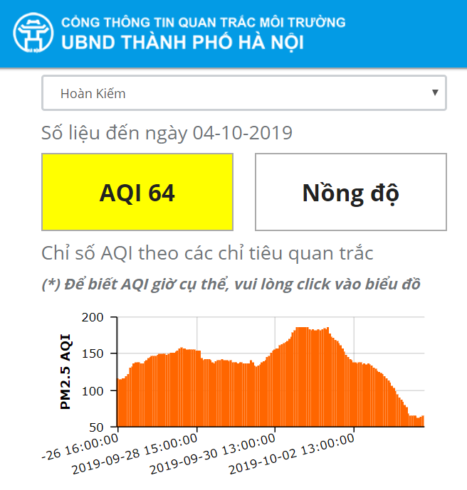 Tại Hoàn Kiếm, chỉ số AQI ngày 4/10 là 64 còn hôm qua là 121. |
