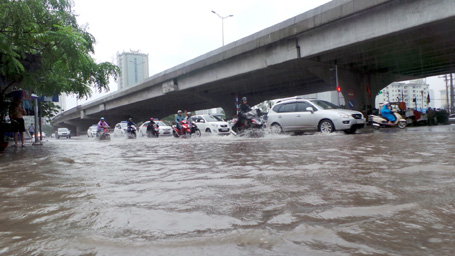 Theo ghi nhận của chúng tôi, dù lượng mưa lớn đổ xuống nhưng đến hơn 12h trưa, trên các tuyến phố lượng nước tiêu thoát đảm bảo. Đến 13h10, tại nhiều khu vực của Thủ đô vẫn đang tiếp diễn mưa.