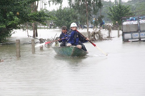 Tại huyện Quảng Điền, do mực nước sông Bồ xấp xỉ báo động 3 nên các tuyến tỉnh lộ đi qua địa phận huyện này đều bị ngậptừ 0,6m có nơi ngập sâu gần 1m, khiến người dân đi lại rất khó khăn; có nơi bà con phải sử dụng phương tiện di chuyển bằng ghe, thuyền.