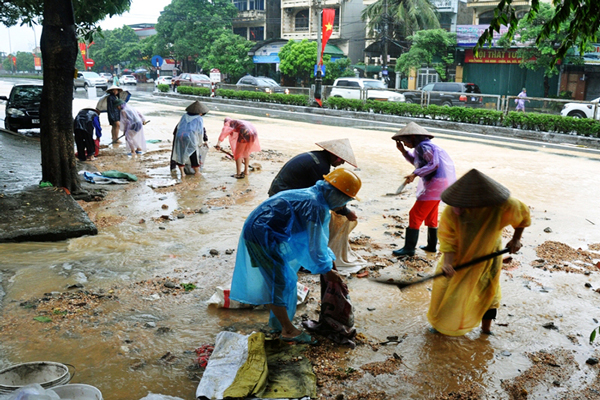 Người dân Quảng Ninh dọn dẹp đường phố sau lũ lớn. |