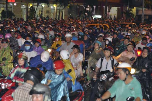 Do thời điểm mưa ngập xảy ra vào giờ cao điểm, công nhân từ các khu công nghiệp, công ty đổ về khá đông. Vì đây là những tuyến đường “huyết mạch” nên lượng phương tiện lưu đông, tình trạng kẹt xe kéo dài hơn 7km…