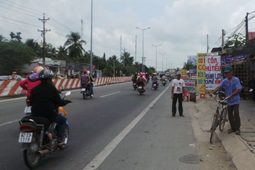 Gần đây nhất, trong chuyến đưa hàng từ miền Tây đi TP.HCM, do xe tôi chở quá trọng tải nên bị CSGT tuýt còi. Khi xe tôi vừa tấp sát vào lề đường thì đột nhiên xuất hiện một người đàn ông ngoài 40 tuổi, điều khiển xe máy từ hướng chốt CSGT rồi dừng lại trước mặt tôi rỉ tai: “Xe ông chở quá tải, mệt à nghe, chỗ quen biết không hà, tôi cũng từng làm tài xế nhưng “đuối” quá nên nghỉ, ra đây chạy chọt kiếm vài đồng bạc sống qua ngày. Ông đưa tôi “5 xị” (500 nghìn đồng – PV), tôi xin nộp phạt cho, CSGT ở đây đều là người một nhà”.